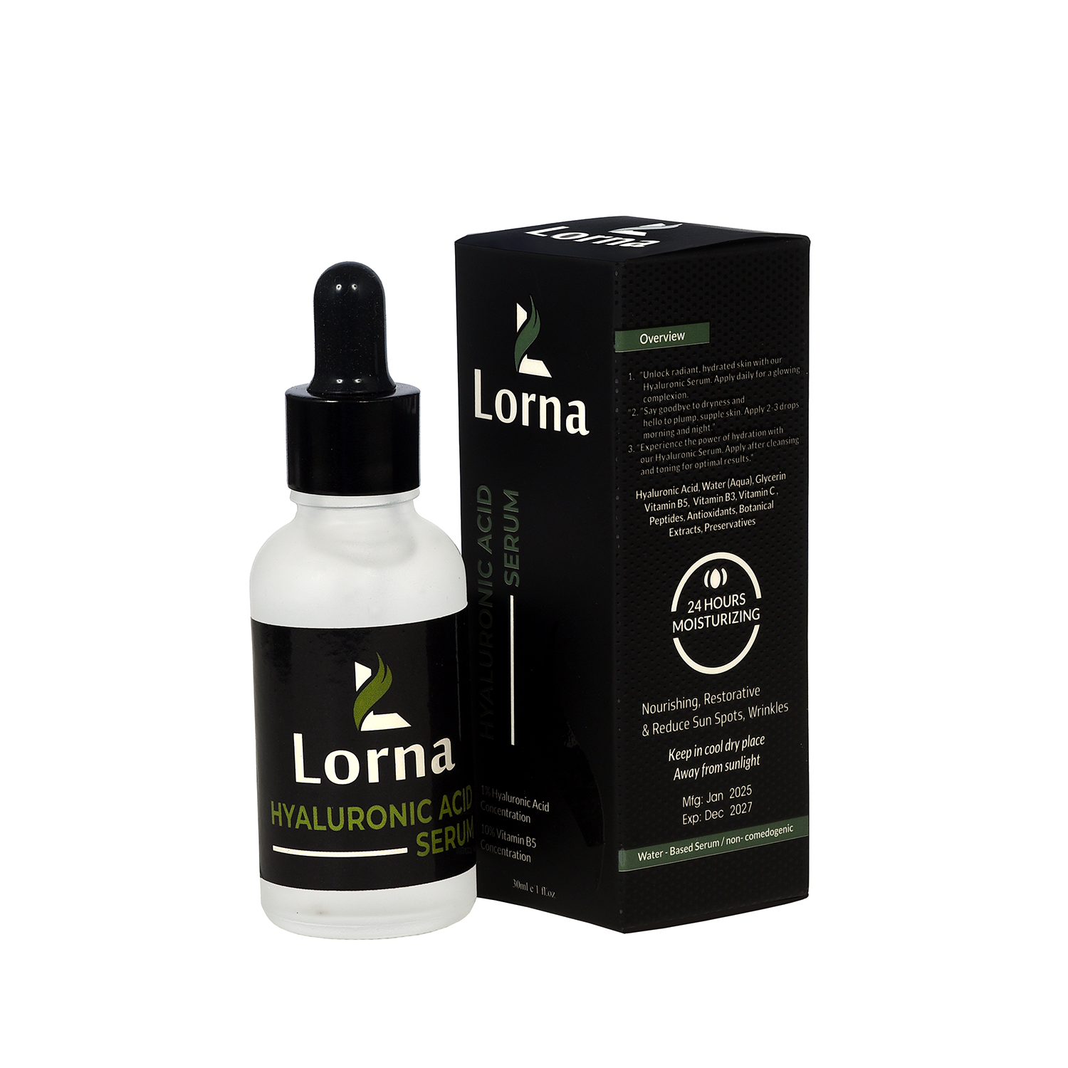 Formulated with pure hyaluronic acid and skin-soothing ingredients, Lorna Serum works wonders as part of your daily skincare routine – whether used alone or under your moisturizer or makeup.